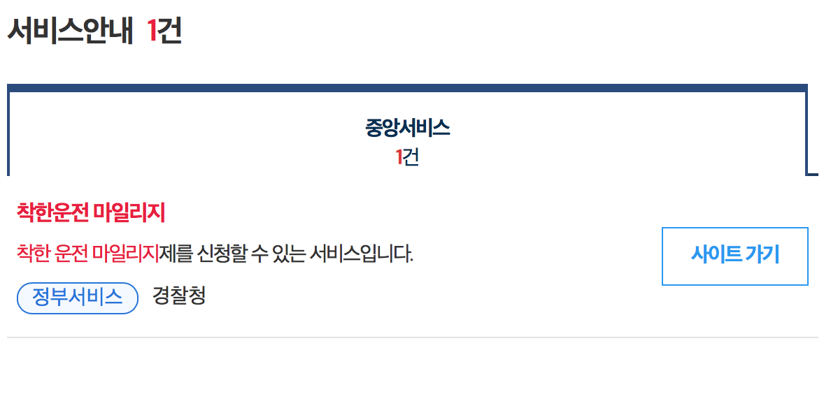 정부24 홈페이지에서 착한 운전 마일리지를 검색하여