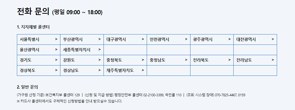 문의사항이나 긴급재난지원금 조회 관련하여 문의하려면