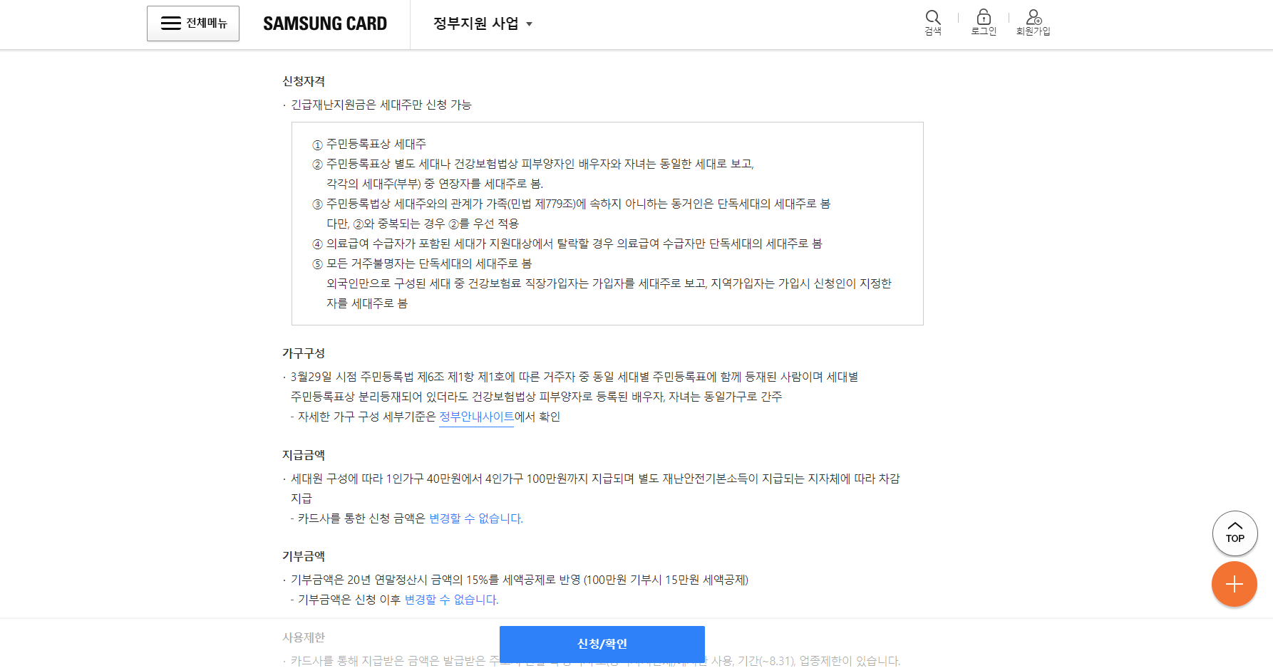 긴급재난지원금 체크카드 신용카드 신청과