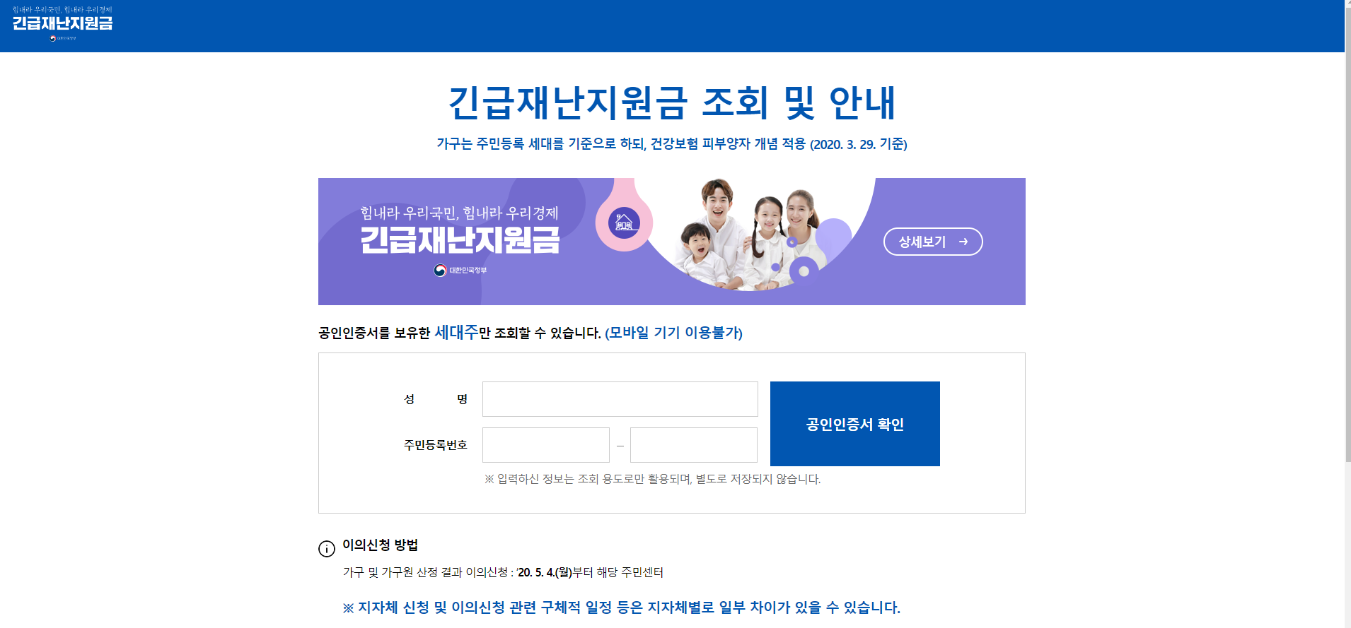 혹시나 대상 확인을 하시려면 긴급재난지원금 홈페이지에 접속하여