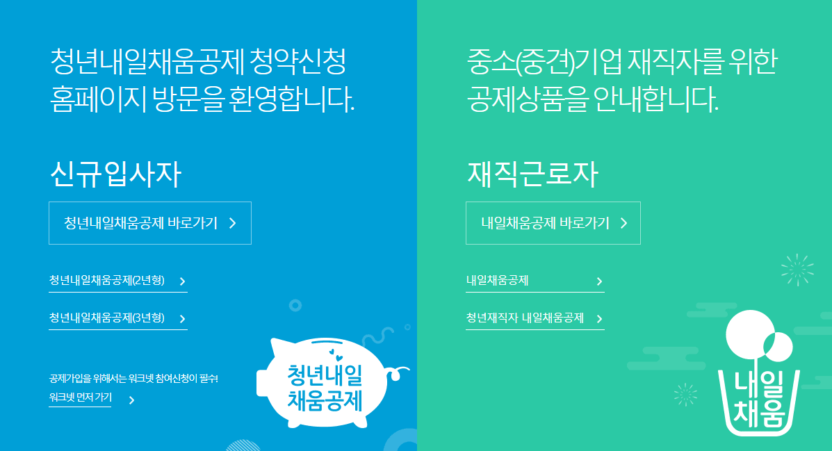 청년 내일 채움 공제의 종류는 두 가지인데 첫 번째로 2년형 내일 채움 공제가 있습니다.