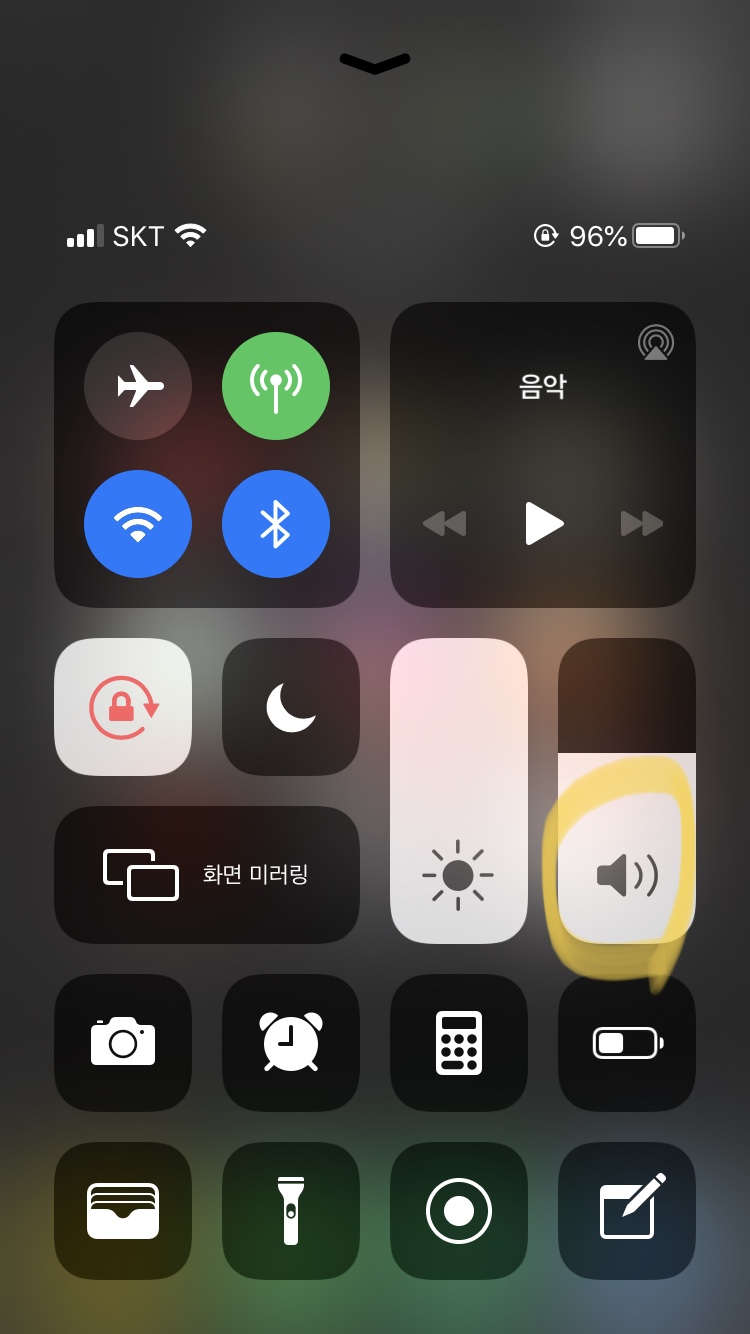 에어팟프로 노이즈캔슬링 하는 첫 번째 방법으로는 아이폰 화면을 쓸어 올리거나 쓸어내리면 나오는