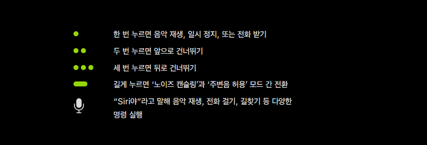 그렇게 미리 설정을 해놓고 에어팟프로를 이용하며 에어팟프로를 꾹 누르는 것 만으로 설정하는 게 더 쉽고 간편한 방법인 것 같습니다.